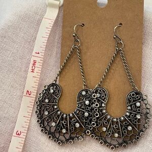 💐5/25 large bold rhinestone statement silver tone chain teardrop earrings