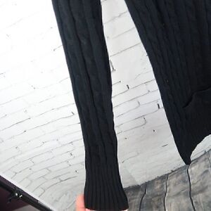 BLACK SCOOP NECK LONG SLEEVE CABLE KNIT SWEATER WITH FRONT POCKETS BY 525 AMERICA SIZE MEDIUM PRE OWNED NO FLAWS