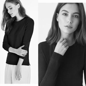 This basic long sleeve sweater is lightweight, fitted, and a comfortable wardrobe staple that is perfect for any on-the-go outfit.