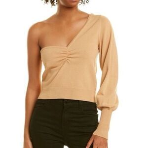 525 America Camel One Shoulder Sweater ruched bust camel color size S NWT