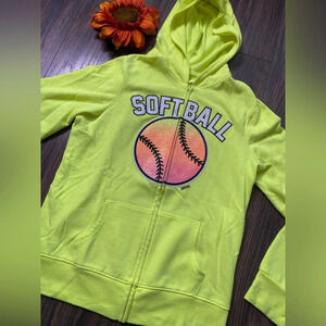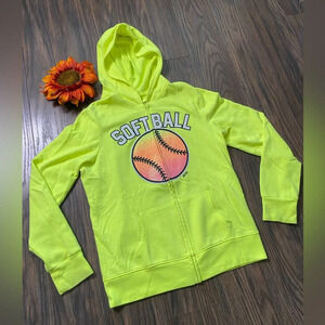 🌻5/$25🌻JUSTICE Neon Yellow Softball Hooded Zip Up Sweatshirt | 14 |