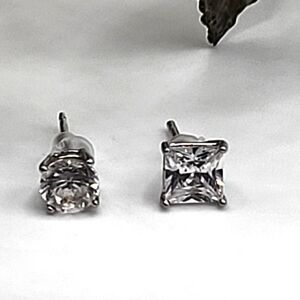 EUC, Funky Minimalist Cubic Zirconia Round & Square Studs
