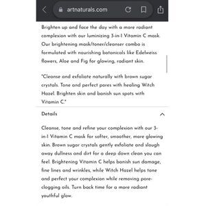 5/$25 SALE NEW ART NATURALS 3-in-1 Vitamin C Face Mask
