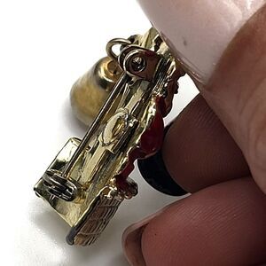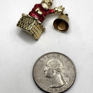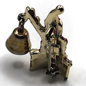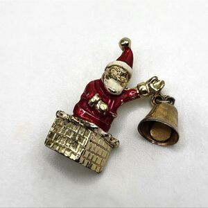 EUC, Christmas Holiday Santa Chimney Bell Red White Gold Enamel Brooch Pin