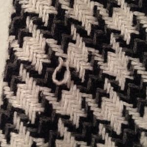 Adorable black and white houndstooth jacket with a hood and bow detail in the back. In great condition, only flaw is that one of the threads is coming out on the right sleeve (see photo 3). Tag says size XL, but it's a child size I think so it fits like a small. Super cute jacket!