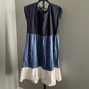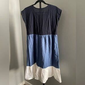 52SEVEN Colorblock Cap Sleeve Linen Blend Dress In Denim Combo Size XL