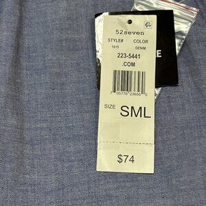 52Seven Dress Womens S Blue Cotton Button Down Chambray Tiered Maxi Western