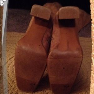 Pretty camel colored boots in great used condition.. Zip on the inside and high chunky heels.. Made of a faux suede material..💰Bundles 10% off.. So save, save, save!!! Ready to ship.📦. Please check first for availability!! 4" heel.. 💖COVER SHOT COURTESY OF t_ms_sincerity💖