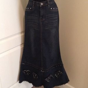 Be UNIQUE in this Awesome jean skirt with cute details. Approximate length 39". Front zip and button. Back slit/kick pleat. ❣❣Items marked with ❣❣are firm unless bundled. 5% off for BUNDLES only. Sometimes I can't ship right away. If you're ok with that then please shop in my closet. 👀 See my Next Ship notice. ❌No Trades ❌No PayPal ❌Please don't advertise your closet on my listing 📦Bundle to save on shipping fees. 🙋Questions, please ask!