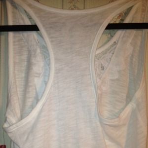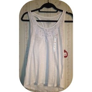 This cute Racerback tank features cute lace detailing- size: medium. (brand new with tags)
