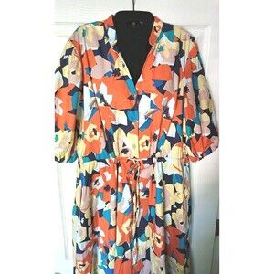 52seven Puff Sleeve Dress Size 16 Colorful Floral Drawstring Waist Pockets