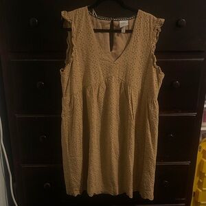 #53 Universal Thread Tan Eyelet Ruffle Dress