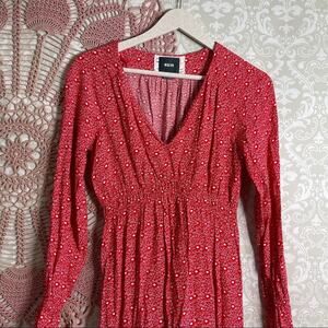 5/$30 Anthropologie Maeve Monaco Long Sleeve Mini Dress Floral Red XS