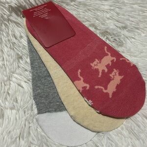 🩶5/$30 Davco Women's Cat Design No-Show Socks - 3 Pack - Gray, Pink, Cream