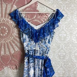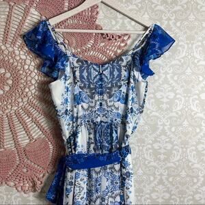5/$30 Eliza J Floral Cold Shoulder Ruffle Midi Dress Blue 4