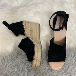 5/$30 JustFab Suede Woven Wedges -BLACK
