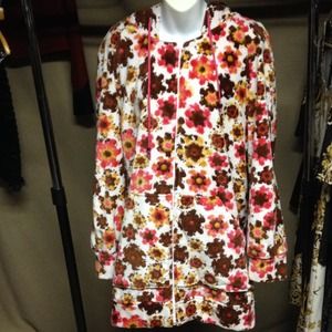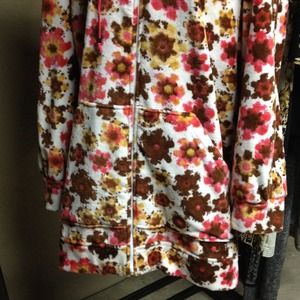 M Missoni flowery hooded zip up that's extra long! Hits upper-mid thigh. Pink, brown and dark yellow colors with a white background. Large kangaroo pockets. Oversized, thick hood. Drawstrings at hood. Terry cloth texture interior. 100% cotton. Perfect for spring through fall. Super comfortable and cute, you'll never want to take it off!! Seriously!