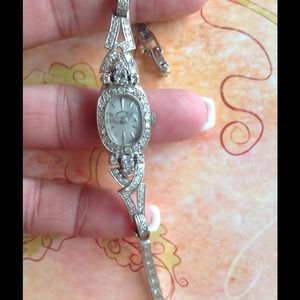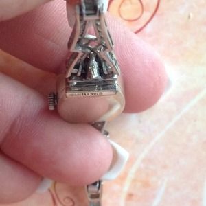 Antiqued 14kt white gold watch and band both surrounded in diamonds. It's been a while since I've had it out and noticed a stone missing when taking pics. The manual wind up has been changed out to battery run several years back. Was thinking about making a bracelet out of it like a friend of mine did and absolutely stunning but since then I got ill . With treatments and medical costs, now raising money to pay for the two months I stayed in Mn for Mayo Clinic😕