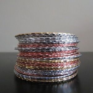 πHOST PICK: Festival Ready Party!π 47 silver, gold, and copper colored skinny bangle bracelets, standard size, NWOT