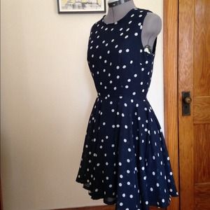 Allover polka dot print dress. Classics A-line shape. High neckline. Sleeveless. Back zipper closure. Lined. Machine washable. Hits above knee. Runs small. Size medium. No trades/PayPal.