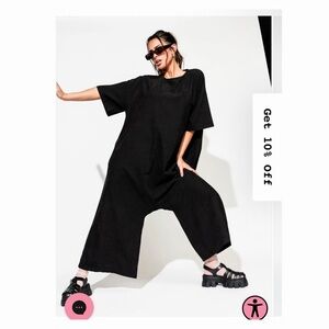 Love this dress! Loose fitting on the top with drawstring. Flouncy and flirty on the bottom. Just worn twice. So cute with wedges or combat boots!