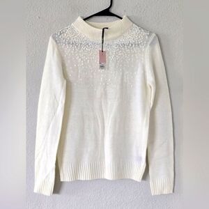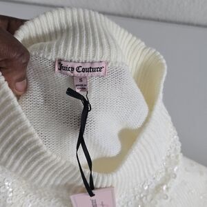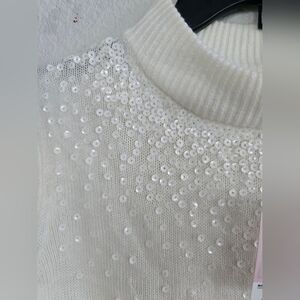 $54 Juicy Couture Turtle Neck Sweater Womens Sz S Ivory Sequins Pull Over