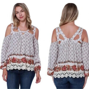 SKYLAR & JADE Cold Shoulder Cutout Long Sleeve Floral Top Size Medium