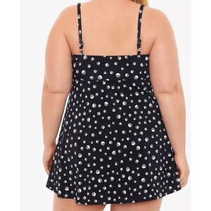 542 Swim Solutions Empire-Banded Tummy-Control Swimdress BLACK DOT sz 20W new