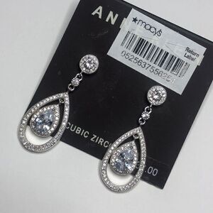 543 Anne Klein silvertone CZ teardrop drop dangle NWT