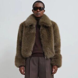 544. THE FRANKIE SHOP Sabrina Faux Fur Jacket in Khaki $399 NWT XS/S