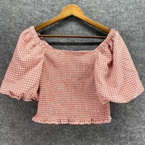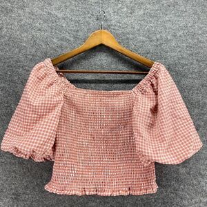 5/$45 BB Dakota Top Women M Medium Pink Plaid Square Neck 3/4 Sleeve Pullover