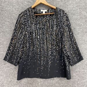5/$45 Coldwater Creek Blouse Women S Small Black Striped Long Sleeve Round Neck