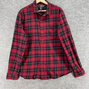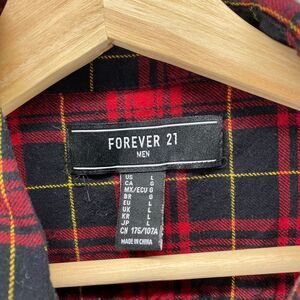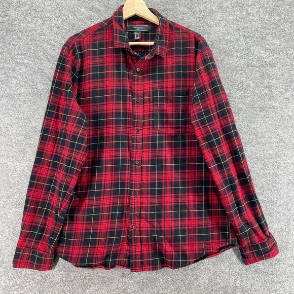 5/$45 Forever 21 Shirt Men L Large Red Plaid Button Up Collared Long Sleeve