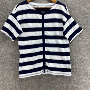 5/$45 Talbots T-Shirt Women M Medium White Striped V-Neck Short Sleeve Cotton