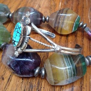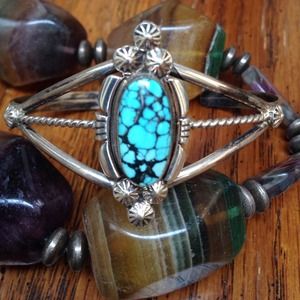Amazing details!! Turquoise set in Sterling silver. One of a kind artisan made.