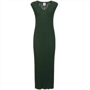 547. VARLEY Christine Cotton Knit Maxi Dress Dark Green $168 NWOT Small