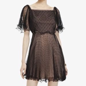 This Black Shalom Pleated Dress by BCBG BCBG MaxAzria Group Inc features gorgeous Swiss-dot tulle overlays with stretch fabric to create a whimsical 30s-via-80s retro look.