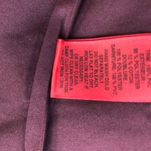 Shell 90% Poly, 10% cotton. Lined in poly. Trim is PVC.