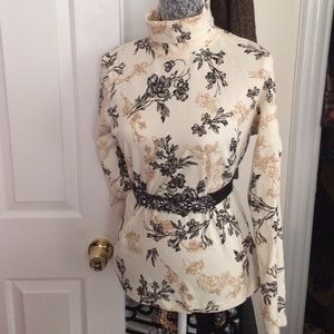 Glitter gold floral turtle neck a simple dazzle to an outfit never worn Sz M, great for work, great for the holidays!!!!