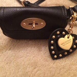 From the Mulberry for Target collection, this mini messenger bag with charm is adorable. I've worn it once and just find it too small for my needs. This is the black pebbled version. Gold hardware.