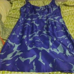 100% silk with cotton lining. Beautiful purple dress. Perfect addition to anyone's wardrobe.