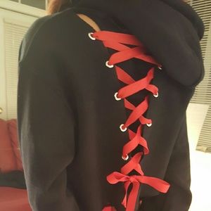 @jenshufo thank u...I can make one without the print..just solid black Hoodie with red ribbon for $40