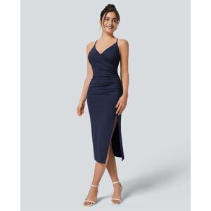 $55 Halara Crossover Ruched Backless Lace Up Split Bodycon size XL