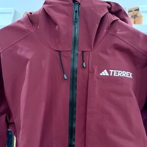 $550 Adidas Terrex Techrock 3L Post-Consumer Nylon RAIN.RDY Jacket - Burgundy