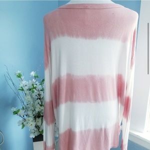 Pink and white tie dye print long sleeve shirt with a v neckline, very soft material