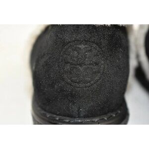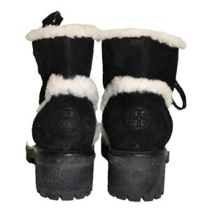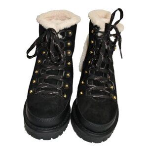 $550 TORY BURCH Cooper Suede Sheep Fur Lace Up Booties BLACK 6 (MG25)