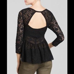This beautifully lacy design with an empire peplum waist and a skin-baring cutout back lends a refined, feminine air to any look.