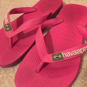 Hot pink Brazilian made Havaianas. Size 4/5. May fit size 6. Price negotiable make offer. These shoes have had some love!