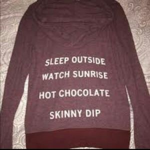 Back Reads : "Sleep Outside, Watch Sunrise, Hot Chocolate, Skinny Dip."