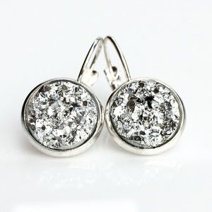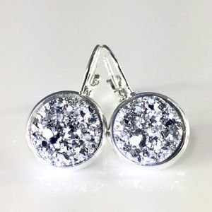Handmade by me metallic chunky silver Drusy style 1 inch silver plated frenchback earrings. Bundle & save 15%. Price FIRM if purchasing one pair. Each piece varies slightly in shape. Made of resin. #drusy #druzy dangle leverback